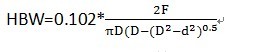 布氏硬度值記為HBS(當(dāng)壓頭為鋼球時(shí)),或者HBW(當(dāng)壓頭為硬質(zhì)合金球時(shí))兩者計(jì)算公式相同。以下以壓頭為硬質(zhì)合金球的硬度值為例: